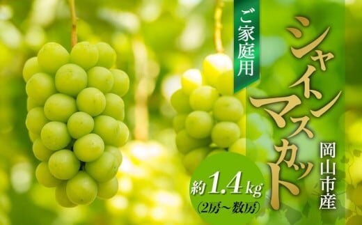 ご家庭用 シャインマスカット 約1.4kg(2房~数房) ぶどう フルーツ 果物 岡山 五果苑 | フルーツ 果物 くだもの シャインマスカット マスカット 岡山県産 国産 ご家庭用 シャインマスカット マスカット フルーツ 果物 くだもの シャインマスカット マスカット