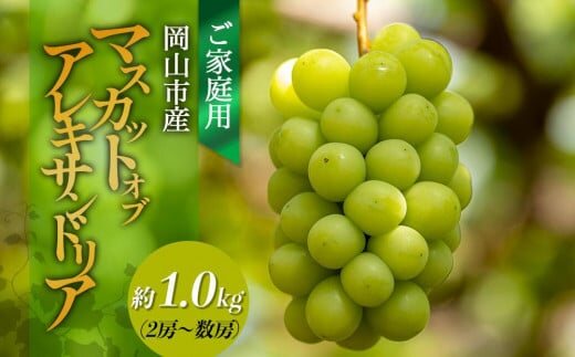 ご家庭用 マスカット・オブ・アレキサンドリア 約1.0kg(2房~数房) ぶどう フルーツ 果物 岡山 五果苑