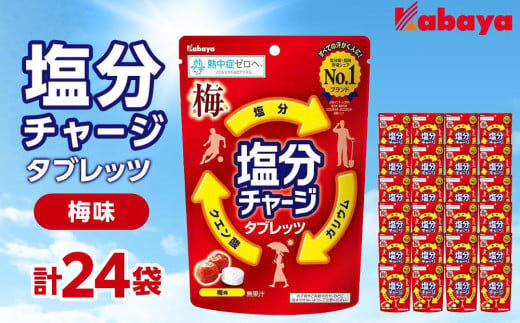 カバヤ 塩分チャージタブレッツ 梅味 24袋【熱中症対策 塩分補給 ミネラル補給 夏バテ防止 カリウム 塩分タブレット 塩分 飴 タブレット 夏 岡山県 岡山市 おすすめ 人気 】