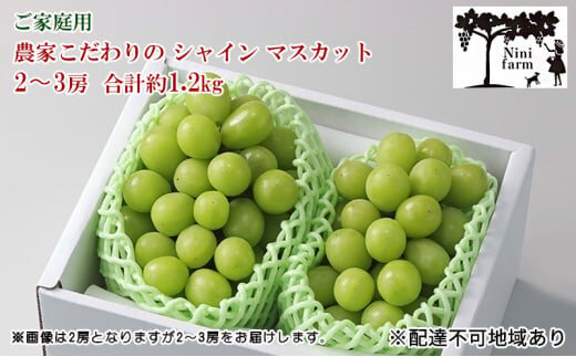 ぶどう 2025年 先行予約 【平均糖度20度】ご家庭用 農家こだわりの シャイン マスカット 2~3房 合計約1.2kg ブドウ 葡萄 岡山県産 国産 フルーツ 果物 【 Nini farm 農家 直送 】 岡山のぶどう デザート 食後