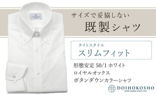 土井縫工所の既製品シャツ【スリムフィット】形態安定 50/1 ホワイトロイヤルオックス ボタンダウンシャツ (FM19511) XL_44