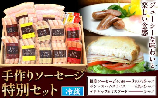 K-07 手作り ソーセージ 特別セット 大容量 社会福祉法人敬業会ヴィレッジ興産 ときわヴィレッジ《45日以内に出荷予定(土日祝除く)》岡山県 笠岡市 粗挽ソーセージ ボンレスハム 肉 豚肉 ギフト