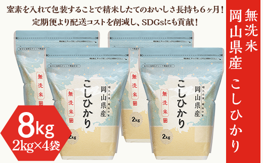 【無洗米】岡山県産こしひかり8kg(2kg×4袋)