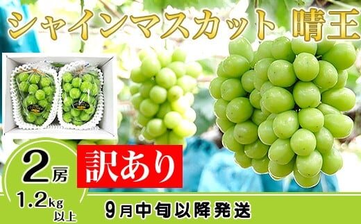 訳あり 先行予約 岡山 シャインマスカット 種無し ぶどう 晴王 2房 1.2kg以上 皮ごと食べられる種なしぶどう 果物 フルーツ 国産 ブドウ くだもの 岡山県産