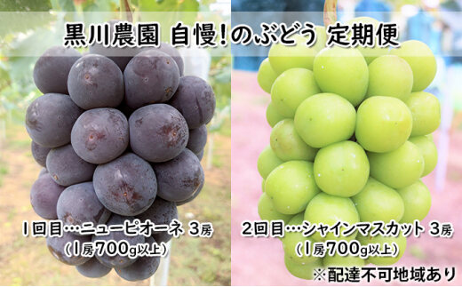 ぶどう 2025年 先行予約 定期便 2回 先行予約 黒川農園 自慢!の 大粒 大房 ニューピオーネ 3房 シャインマスカット 3房 (各1房700g以上) 岡山県産 国産 フルーツ 果物 ギフト [№5735-1708]