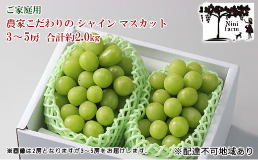ぶどう 2025年 先行予約 【平均糖度20度】ご家庭用 農家こだわりの シャイン マスカット 3~5房 合計約2.0kg ブドウ 葡萄 岡山県産 国産 フルーツ 果物 【 Nini farm 農家 直送 】 [№5735-1949]