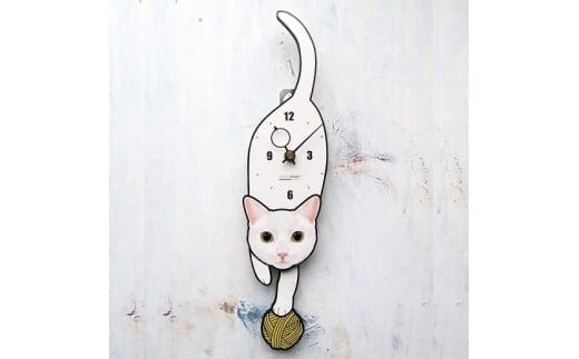 C-63T1 白猫(黄目)-猫の振り子時計テニスボール C-CC-063A