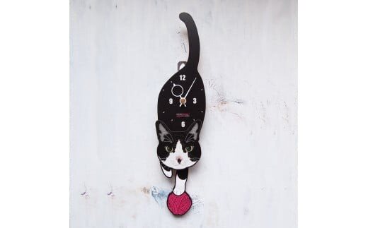 C-47W1 白黒ハチワレ-猫の振り子時計 毛糸玉01.ORANGE C-CC-047A