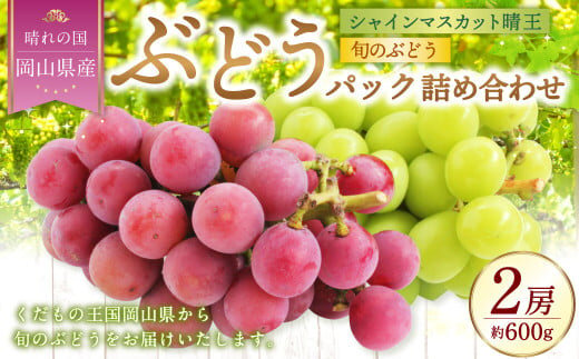 岡山県産 ぶどうパック詰合せ ※2種2パックセット ( シャインマスカット ・ 旬のぶどう ) 【2025年9月上旬~11月下旬発送予定】 / ぶどう ブドウ 葡萄 種なし 種無し マスカット 晴王 はるお 旬の葡萄 フルーツ 果物 くだもの 果実
