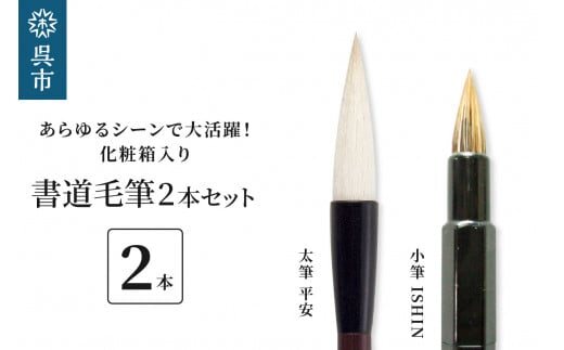 書道毛筆2本セット(太筆:平安 万能小筆:ISHIN)