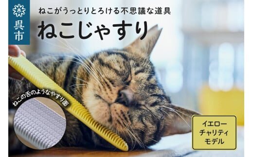 ねこじゃすり イエロー チャリティモデル 猫用ブラシ 毛づくろい グルーミング マッサージ 丸洗い可能 猫グッズ ペット用品 化粧箱入り 広島県 呉市