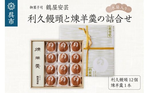 御菓子司 鶴屋安芸 利久饅頭と煉羊羹の詰合せ(木箱入り)