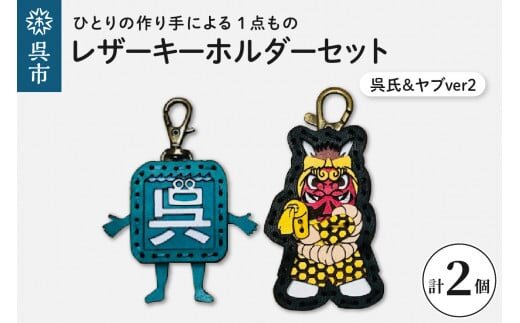 呉氏&ヤブver2 レザーキーホルダーセット 一点もの 革 キーリング レディース メンズ 鍵 バッグチャーム ストラップ 革小物 かわいい ゆるキャラ ご当地キャラ 鬼 キャラクター ギフト プレゼント 送料無料 広島県 呉市