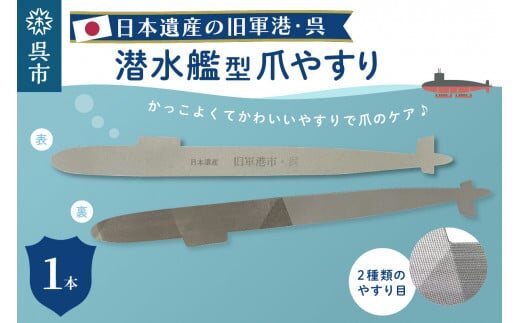 日本遺産 潜水艦型爪やすり 呉 やすり 両利き つめ ネイル 爪ケア ネイルケア ステンレス 粗目 細目 ミリタリー 広島県 呉市