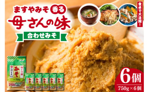 ますやみそ 香る母さんの味合わせみそ750g 6個セット 味噌 みそ 合わせ味噌 米味噌 麦味噌 みそ汁 味噌汁 調味料 料理 食品 発酵食品 加工食品 国産 常温配送 送料無料 広島県 呉市
