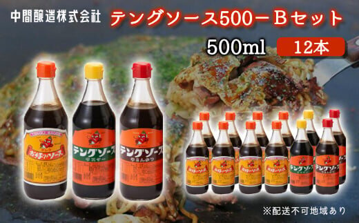 テングソース500Bセット(お好み×8本/半とん・ウスター各2本) 中間醸造 お好み焼き 焼きそば たこ焼き とんかつ 串揚げ 調味料 天狗 ソース お好みソース 001018