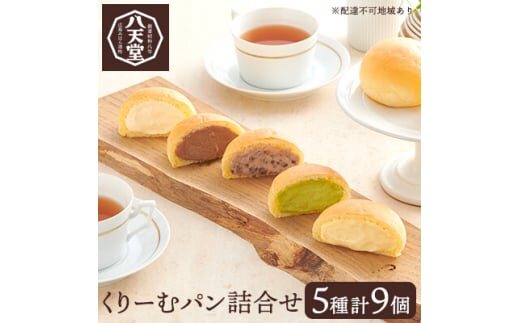 くりーむパン 5種 計9個 詰合せ 八天堂 クリームパン カスタード 生クリーム 抹茶 小倉 チョコレート 133002