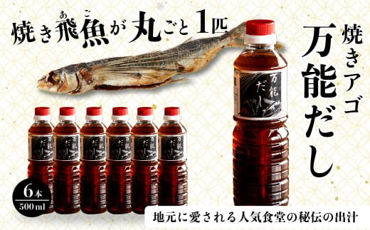 焼きアゴをまるごと一本使用!飛魚(あご)だし 3L(500ml×6本)トビウオ 料亭 ダシ 出汁 アゴ 飛魚 高級 167002