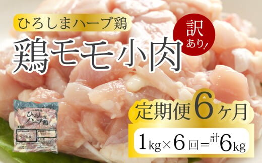 【6か月定期便】<訳あり>《ひろしまハーブ鶏》鶏モモ小肉1kg 定期便 もも とり 冷凍 鳥 チキン 冷凍 からあげ 徳用 大容量 お弁当214005