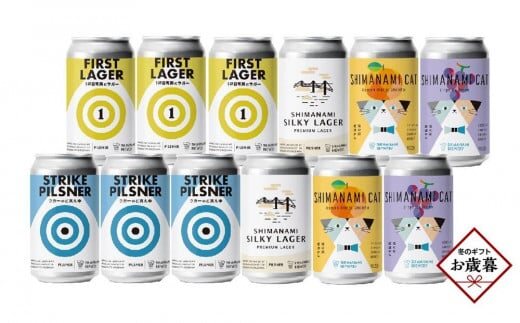 ------------------------------------------------------------------------- ◆こちらは、【お歳暮ギフト】対応の返礼品です◆ ※熨斗をおつけします。 ※「ふるさと納税」の記載があるパンフレット等は同梱しません。 ※送り状(配達伝票)に「尾道市ふるさと納税」が印字されます。予めご了承ください。 -------------------------------------------------------------------------- ファーストラガー(370ml×3本) ストライクピルスナー(370ml×3本) しまなみキャット フルーツA(370ml×2本) しまなみキャット フルーツB(370ml×2本) 季節のラガー or エール or サワーおまかせ(370ml×2本) |