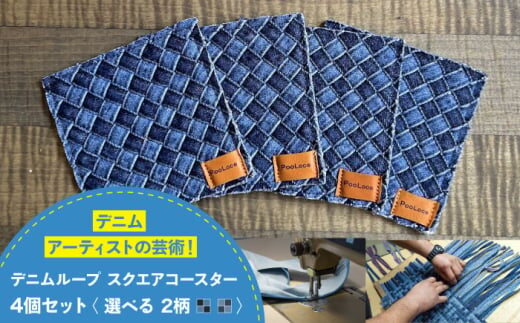 「デニムループ スクエア コースター」×4個 サイズ:11cm×11cm 柄:オリジナル 【加工地】 広島県福山市 |