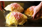 牛ミンチ肉から溶け出るジューシー脂で、麺や生地を揚げ物のようにパリッと、