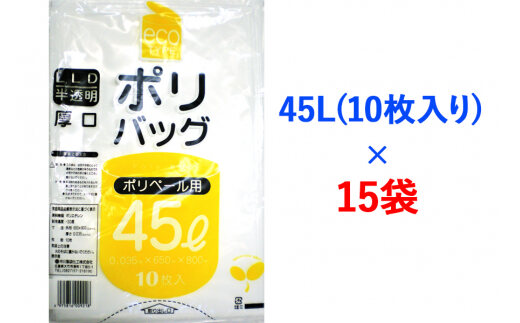 ■透明ゴミ収集袋ポリバックエコタイプ (半透明 乳白1%) 45L(10枚入り)×15袋 |
