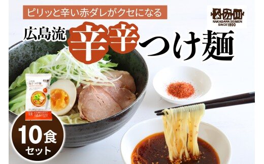 瀬戸内麺工房なか川「広島流 辛辛つけ麺10食セット」 (10袋、たれ、すり胡麻、辛味パウダー付き)|本格 モチモチ もちもち 辛辛つけ麺 らーめん 拉麺 半生麺 食べ比べ 簡単調理 グルメ お取り寄せ たっぷり10食 [1924]