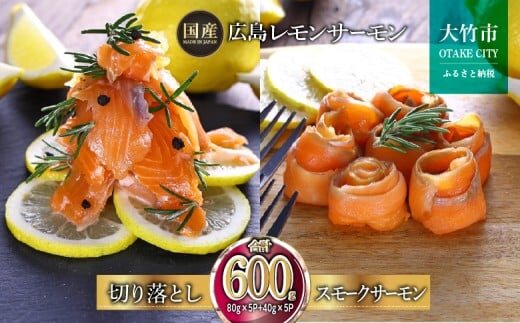 国産サーモン 詰め合わせセットE 約600g [切り落とし (80g×5P)+スモークサーモン (40g×5P)] 小分け 広島レモンサーモン|広島 ふるさと納税 特産品 グルメ 国産 サーモン レモンサーモン 高級 広島県産 美味しい お取り寄せ ギフト [1965]