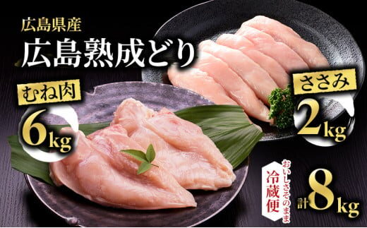 [№5895-0167]鶏肉 セット 広島熟成どり 8kg ( むね肉 6kg ・ ささみ 2kg )【配達不可:沖縄・離島】
