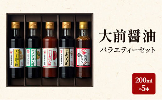 [№5895-0746]大前醤油 200ml×5本セット 調味料 醤油 ぽん酢 ポン酢 焼肉のたれ 詰め合わせ セット 広島 安芸高田市