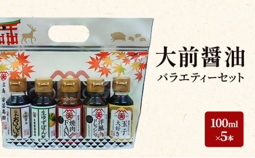 [№5895-0748]大前醤油 100ml×5本セット 調味料 醤油 ドレッシング ぽん酢 ポン酢 焼肉のたれ 詰め合わせ セット 広島 安芸高田市