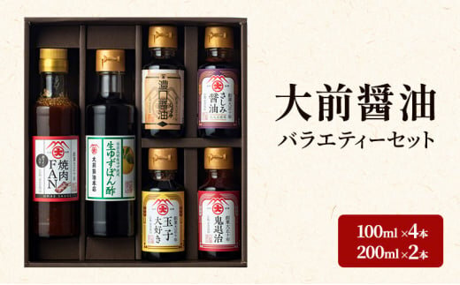[№5895-0749]大前醤油 100ml×4本、200ml×2本セット 調味料 醤油 ぽん酢 ポン酢 焼肉のたれ 詰め合わせ セット 広島 安芸高田市