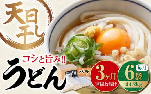 【全3回定期便】【 天日⼲し 製法 】江田島のうどん たっぷりセット バラ 700g×6袋 うどん ウドン そば ソバ そうめん ソウメン 麺 麺類 乾麺 ⼲麺 蕎麦 素麺 だし 出汁 料理 鍋 和食 醤油 釜玉 コシ 手作り 食べ比べ セット 大容量 保存食 常温 グルメ 人気 好評 リピート ギフト プレゼント 贈答 人気 高品質 好評 広島県産 江田島市/迫製麺所[XAM014]