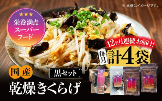 【全12回定期便】【栄養満点のスーパーフード!りんりんきくらげ】国産 乾燥 木耳 美容 健康 黒セット 計4袋 きくらげ キクラゲ 木耳 きのこ キノコ 食品 食物繊維 野菜 やさい ビタミンD 乾燥 炒め物 ラーメン 便利 密封 安心 安全 美容 健康 腸活 ギフト 国産 広島県産 人気 江田島市/株式会社凛[XCB017]
