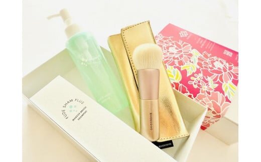 ファンデーションブラシとブラシ洗浄剤のセット。ブラシ専用ケース付。