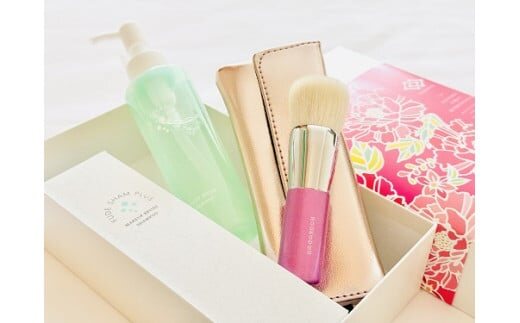 ファンデーションブラシとブラシ洗浄剤のセット。ブラシ専用ケース付。