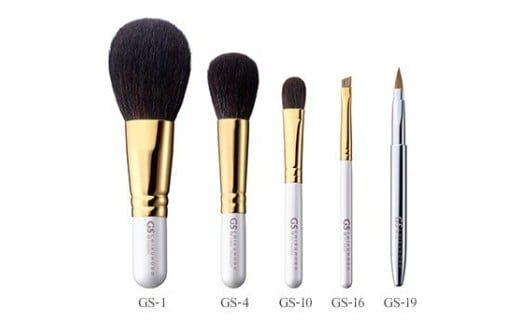 GS-1 パウダー 1本 GS-4 チーク/ハイライト 1本 GS-10 アイシャドー 1本 GS-16 アイブロー 1本 GS-19 リップ 1本 C-30 ブラシケース 1個 材質等の詳細は、画像を参照。 |