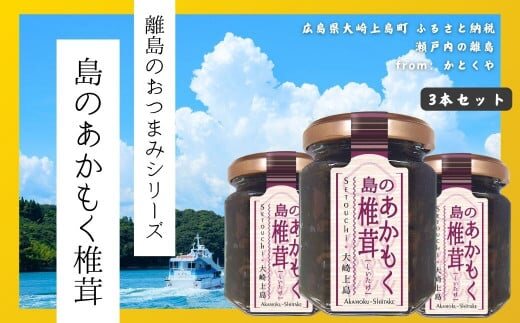 【島のおつまみシリーズ】島のあかもく椎茸 3本セット 佃煮 瀬戸内 広島 大崎上島 離島 ご飯 お供 お酒 肴 あて アカモク しいたけ