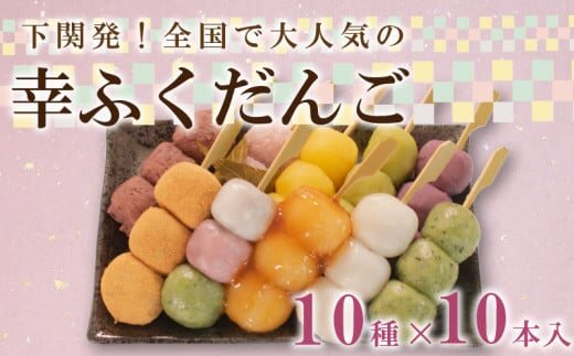 大人気の幸ふくだんご10種類(みたらし・三色・よもぎ・小倉・桜もち・生チョコ・きな粉・栗・ずんだ・紫いも)