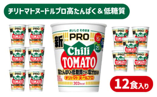 カップヌードル チリトマト PRO 高たんぱく & 低糖質 さらに塩分控えめ 12食 入り 糖質50%オフ 塩分25%オフ (カップヌードルチリトマトヌードル比) ダイエット カップヌードルプロ 長期保存 謎肉 ラーメン カップラーメン インスタント 日清食品 即席麺 カップ麺 大容量 下関市 山口県