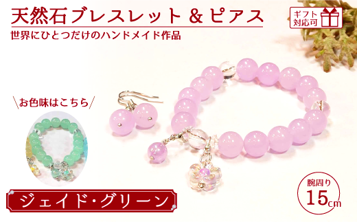 天然石ブレスレット (ジェイド) + ピアス (樹脂チャーム付) グリーン15cm 【天然石 ブレスレット ピアス プレゼント ギフト 山口県 宇部市】