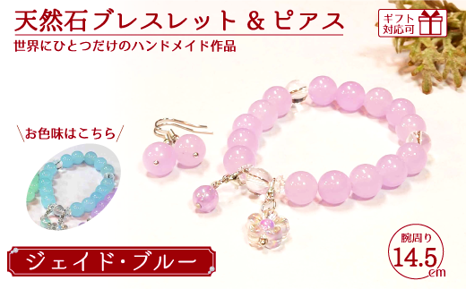 天然石ブレスレット (ジェイド) + ピアス (樹脂チャーム付) ブルー 14.5cm 【天然石 ブレスレット ピアス プレゼント ギフト 山口県 宇部市】