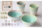 さわやかなレモンとブルーのグラデーションの器シリーズ【Lemonade】と、ピンクとグリーンのグラデーションの器シリーズ【mint】のカップとお茶碗を色違いでセットにしました。贈り物にも、ご自分使いにもうれしいセットです。カップは、シンプルな形状でお茶やジュース、お酒など、普段使いにピッタリです。