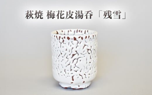 梅花皮の景色がまるで残雪を想わせる釉調です。 素地と純白の釉薬との対比が美しい色合いです。 普段使いの湯呑や贈答用にお使いいただけます。