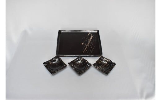 萩焼 銀彩ブラックプレートセット |HGH00020