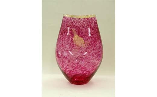 金赤ガラスに金銀箔をちりばめた花入れです。