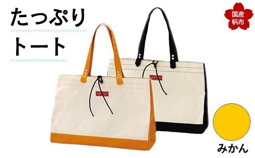 たっぷりトート<みかん> 横幅48cm×縦幅33cm×マチ20cm トートバッグ かばん トート バッグ 国産 帆布 みかん F6L-133