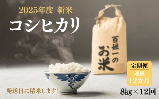 256-1001 【12回定期便】石井町産コシヒカリ8kg×連続12カ月 ※離島への配送不可