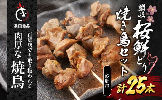 百貨店でも扱われる肉厚な焼鳥!讃岐桜鮮どり焼き鳥セット 砂肝串×25本